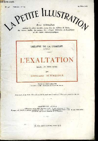 La petite illustration - nouvelle série n° 378 - théatre n° 205 - L'exaltation, drame en trois actes par Edouard Schneider, représentée pour la première fois le 14 février 1928 au théatre de la comédie a Genève