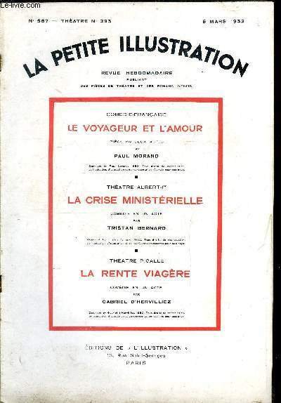 La petite illustration - nouvelle série n° 567 - théatre n° 293 - Le voyageur et l'amour, pièce en deux actes par Paul Morand, La crise ministérielle, comédie en un acte par Tristan Bernard, La rente viagère, comédie en un acte par Gabriel d'Hervilliez
