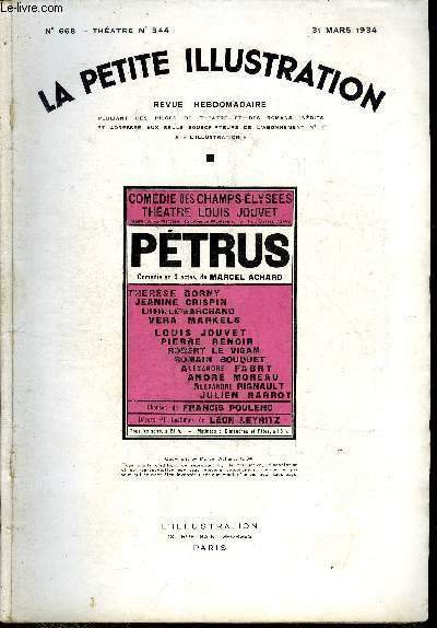 La petite illustration - nouvelle série n° 668 - théatre n° 344 - Pétrus, pièce en trois actespar Marcel Achard, représentée pour la première fois le 7 décembre 1933 a la comédie des champs élysées