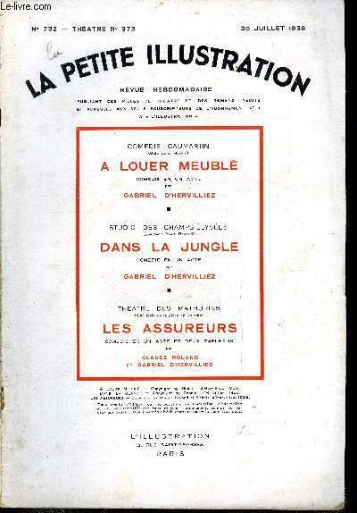 La petite illustration - nouvelle série n° 732 - théatre n° 373 - A louer meublé, comédie gaie en un acte par G. D'Hervilliez, Dans la jungle, comédie en un acte par G. d'Hervilliez, Les assureurs, comédie gaie en un acte et deux tableaux par Claude