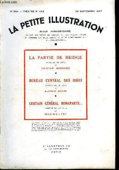 La petite illustration - nouvelle série n° 840 - théatre n° 423 - La partie de bridge, pièce en un acte par Tristan Bernard, Bureau central des idées, comédie en un acte par Alfred Gehri, Certain général Bonaparte, comédie en un acte par Maxime-Léry