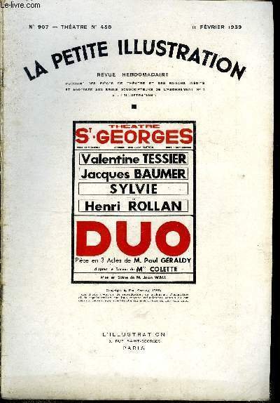 La petite illustration - nouvelle série n° 907 - théatre n° 455 - Duo, pièce en trois actes d'après le roman de Colette par Paul Géraldy, représenté pour la première fois a Paris, le 10 octobre 1938 au théatre Saint Georges