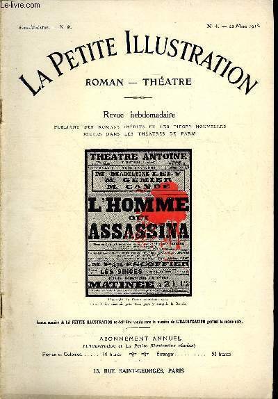 La petite illustration n° 4 série théatre n° 2 - L'homme qui assassina, pièce en quatre actes, d'après le roman de Claude Farrère par Pierre Frondaie, représentée pour la première fois le 19 décembre 1912 au théatre Antoine