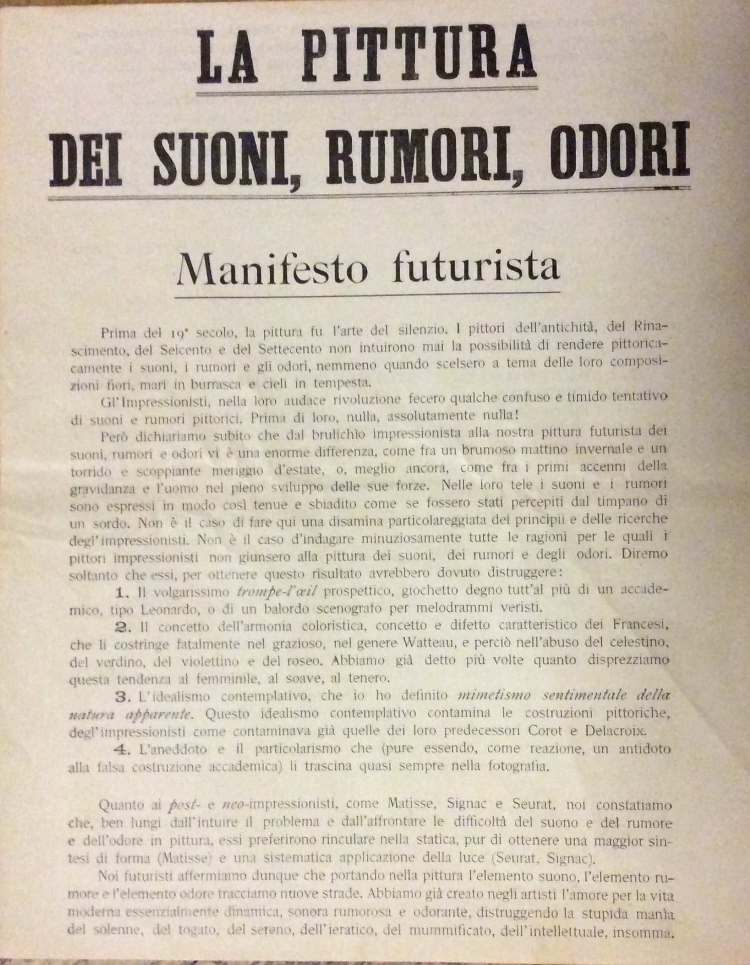 LA PITTURA DEI SUONI, RUMORI, ODORI. MANIFESTO FUTURISTA.