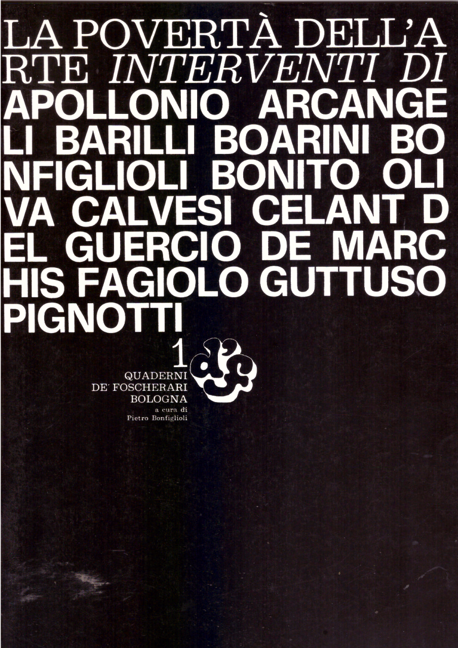 - con testi di: Bonfiglioli, Celant, Barilli , Boarini, Calvesi,, Arcangeli, De Marchis, Apollonio, Fagiolo, Guttuso, Del Guercio, , Pignotti, Bonito Oliva Ed Galleria de' Foscherari