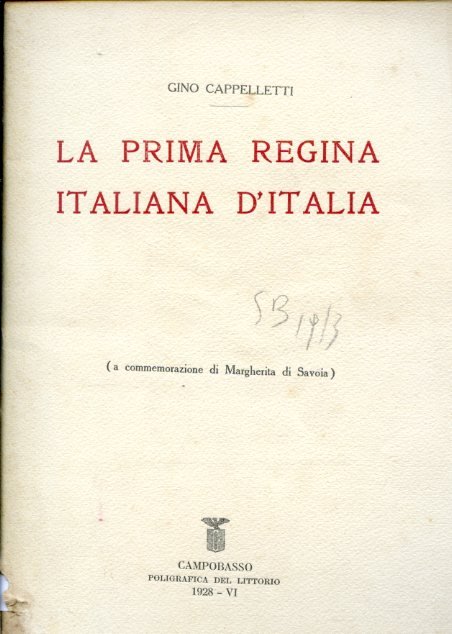 La prima Regina italiana d'Italia (a commemorazione di Margherita di Savoia) | Libros antiguos y modernos | Cappelletti Gino