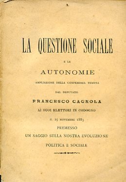 La questione sociale e le autonomie. Ampliazione della conferenza tenuta dal deputato Francesco Cagnola ai suoi elettori in Codogno il 25 novembre 1883 premesso uno sguardo alla nostra evoluzione politica e sociale