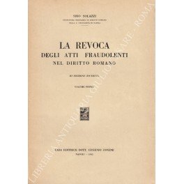 La revoca degli atti fraudolenti nel diritto romano. Volume primo | Libros antiguos y modernos | Solazzi Siro (1875-1957)
