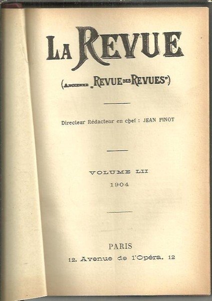 LA REVUE. (ANCIENNE REVUE DES REVUES). 1904. VOL LII. N. 5. SEPTEMBRE-OCTOBRE.