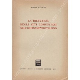 La rilevanza degli atti comunitari nell'ordinamento italiano | Libros antiguos y modernos | Mattioni Angelo