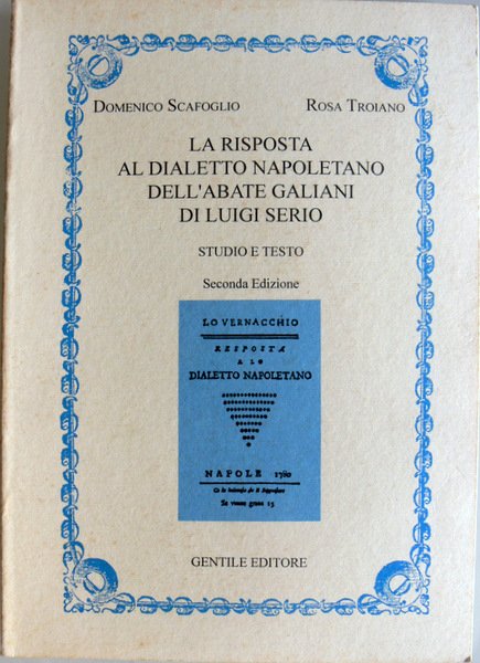 LA RISPOSTA AL DIALETTO NAPOLETANO DELL'ABATE GALIANI DI LUIGI SERIO | Libros antiguos y modernos | Domenico Scafoglio, Rosa Troiano, Luigi Serio