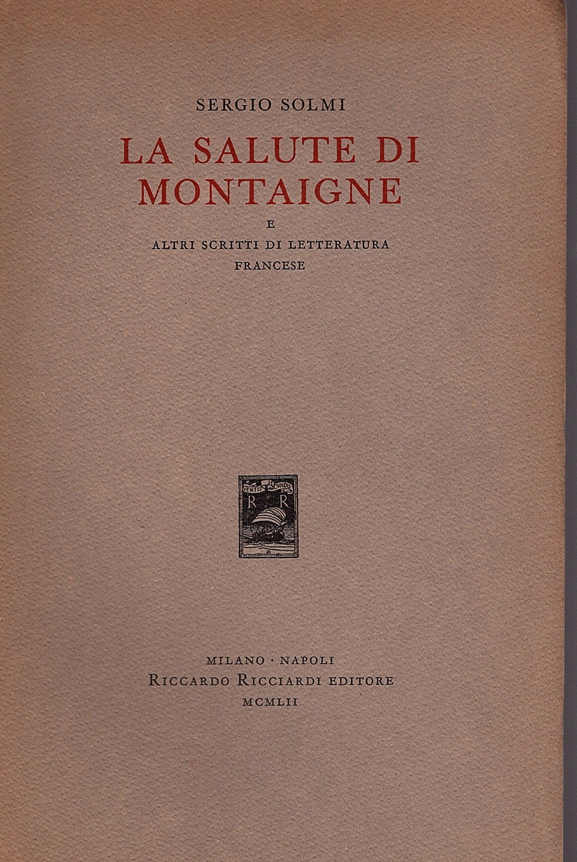 La salute di Montaigne e altri scritti di letteratura francese | Libros antiguos y modernos | Solmi Sergio