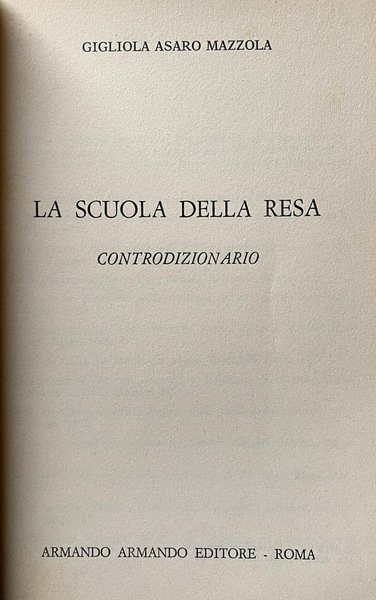LA SCUOLA DELLA RESA. CONTRODIZIONARIO. | Libros antiguos y modernos | Gigliola Asaro Mazzola