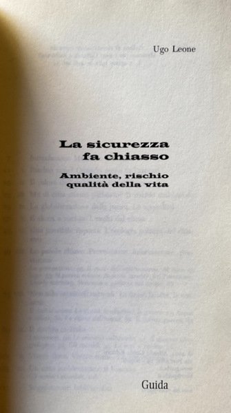LA SICUREZZA FA CHIASSO. AMBIENTE, RISCHIO, QUALITÀ DELLA VITA | Libros antiguos y modernos | Ugo Leone