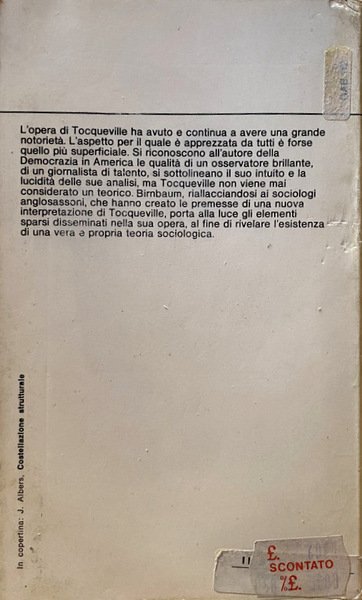 L'opera di Tocqueville ha avuto e continua a avere una grande notorietà. L'aspetto per il quale è apprezzata da tutti è forse quello più superficiale. Si riconoscono all'autore della Democrazia in America le qualità di un osservatore brillante, di un giornalista di talento, si sottolineano il suo intuito e la lucidità delle sue analisi, ma Tocqueville non viene mai considerato un teorico. Birnbaum, riallacciandosi ai sociologi anglosassoni, che hanno creato le premesse di una nuova interpretazione di Tocqueville, porta alla luce gli elementi sparsi disseminati nella sua opera, al fine di rivelare l'esistenza di una vera e propria teoria sociologica.