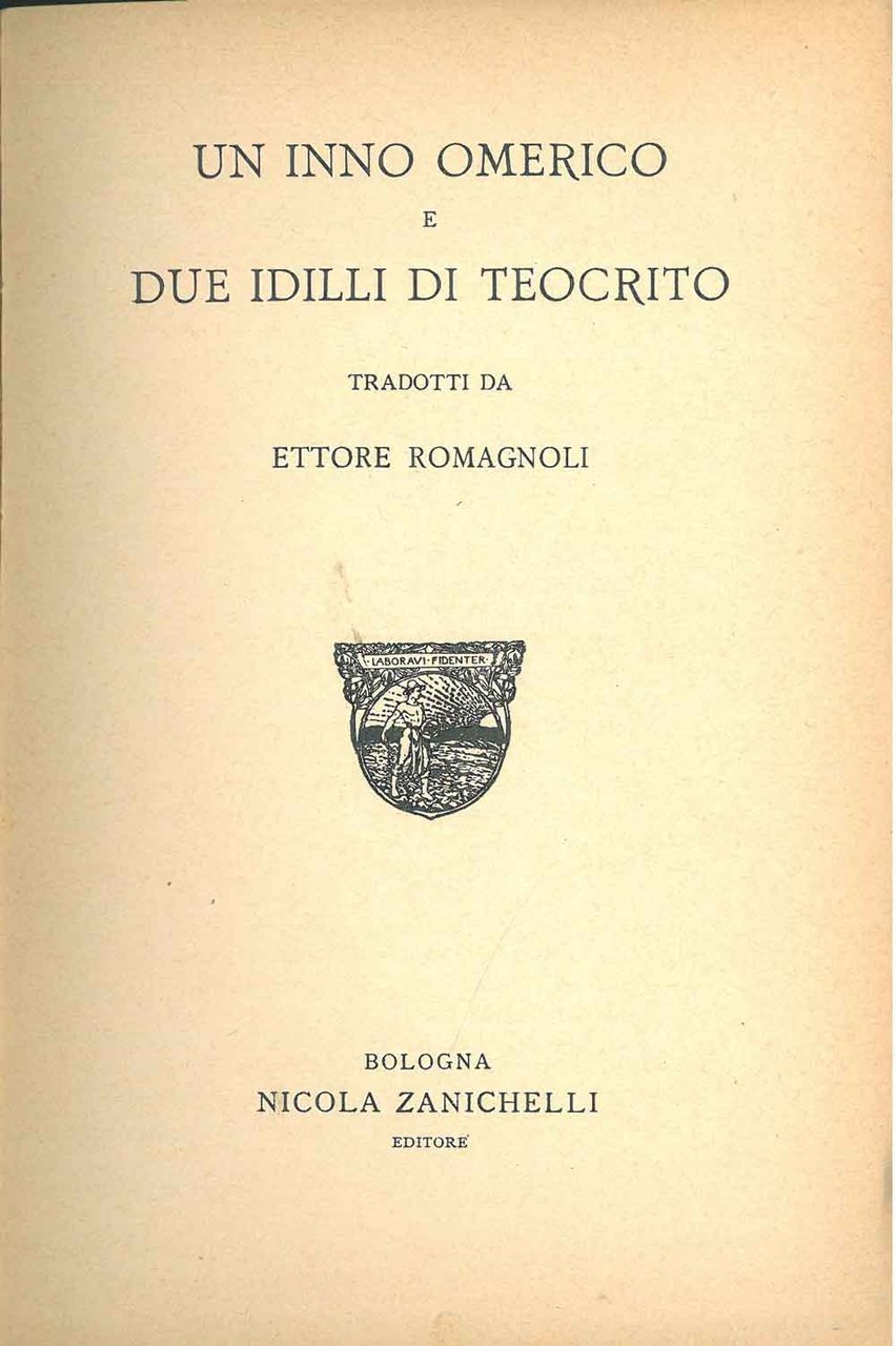 La strenna delle colonie scolastiche estive bolognesi. Anno XXVIII - Gennaio MCMXXV. Un inno omerico e due idilli di Teocrito tradotti da Ettore Romagnoli