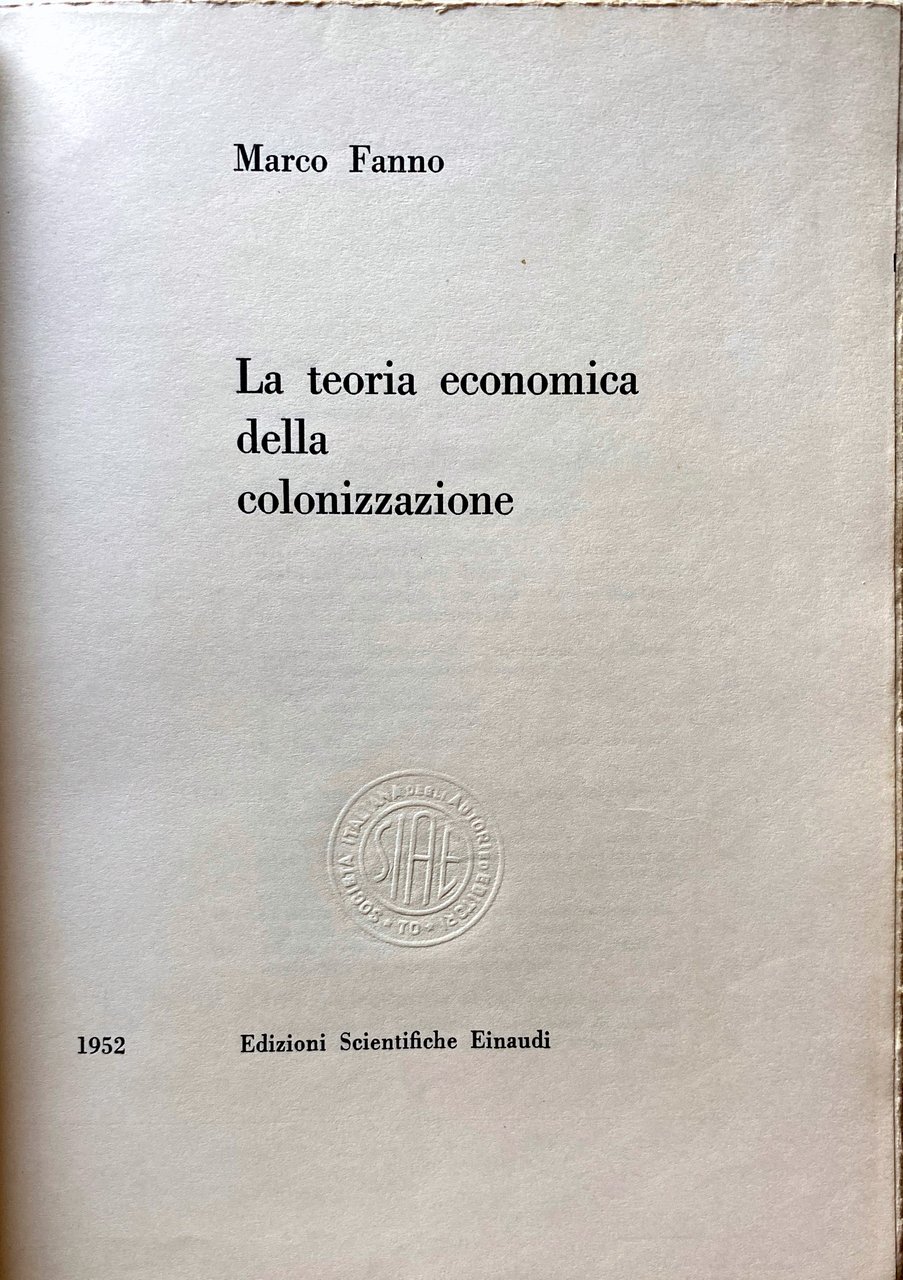 Titolo: La teoria economica della colonizzazione