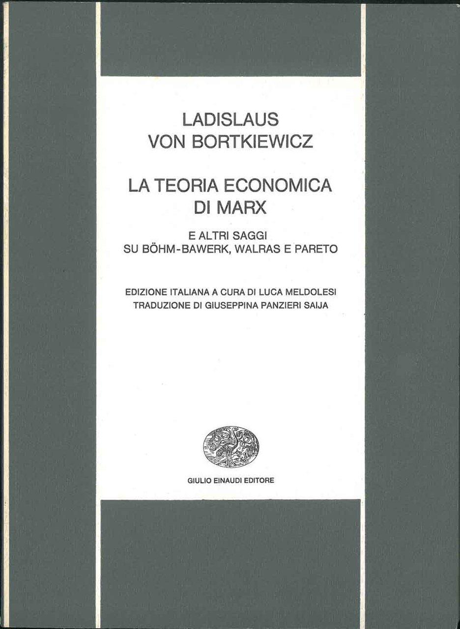 La teoria economica di Marx e altri saggi su Bohm-Bawerk, Walras e Pareto. Edizione italiana a cura di Luca Meldolesi
