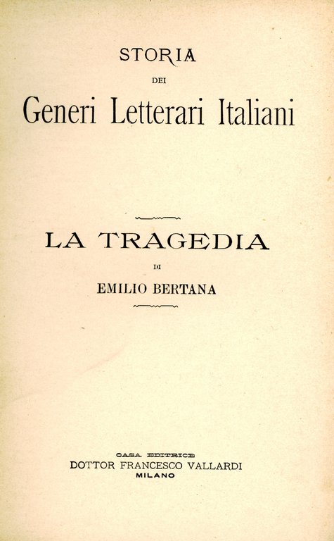 La tragedia. Storia dei generi letterari italiani