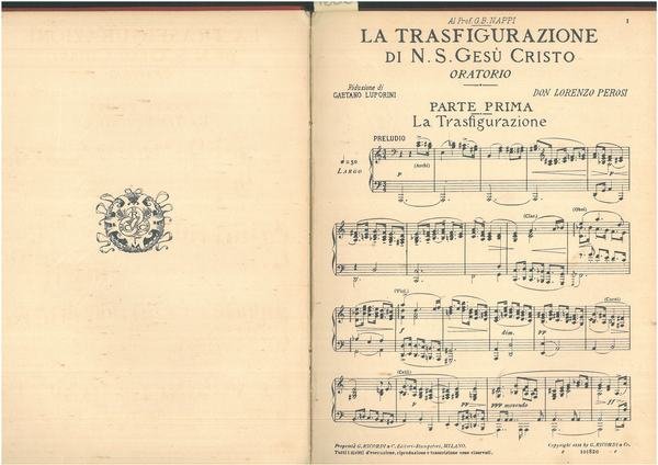 La trasfigurazione di N. S. Gesù Cristo. Oratorio in due parti per canto orchestra ed organo. Riduzione per canto e pianoforte od organo di G. Luporini