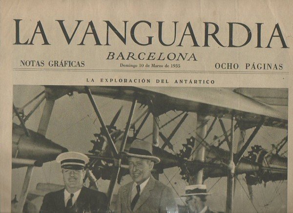 LA VANGUARDIA. BARCELONA. NOTAS GRAFICAS. DOMINGO 10 DE MARZO DE 1935. LA EXPLORACION DEL ANTARTICO.