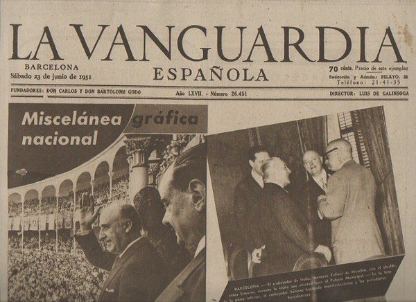 LA VANGUARDIA ESPAÑOLA. AÑO LXVII. NUMERO 26.451. SABADO 23 DE JUNIO DE 1951.
