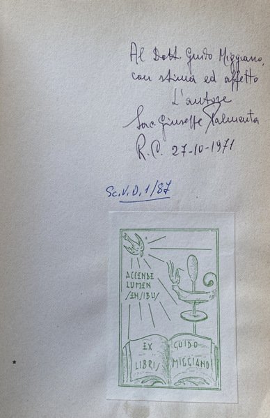 IN ANTIPORTA: AUTOGRAFATO CON DEDICA AUTOGRAFA DELL'AUTORE AL CELEBRE GIORNALISTA CALABRESE GUIDO MIGGIANO; ADESIVO EX-LIBRIS "GUIDO MIGGIANO". RARO.