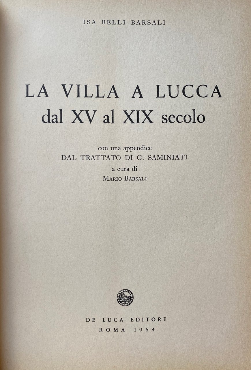 LA VILLA A LUCCA DAL XV AL XIX SECOLO CON UNA APPENDICE DAL TRATTATO DI GIOVANNI DI VINCENZO SAMINIATI | Libros antiguos y modernos | Isa Belli Barsali, Mario Barsali