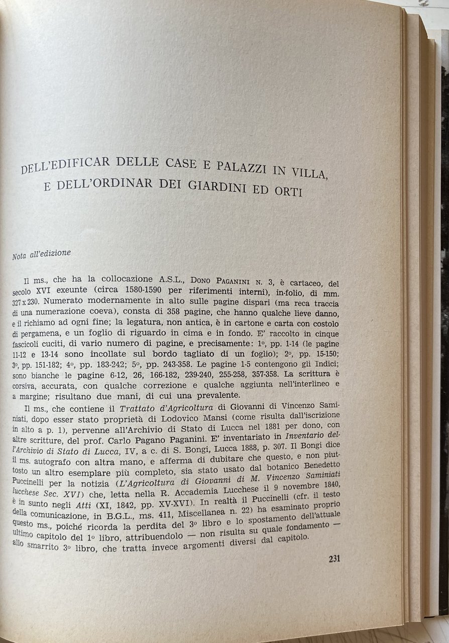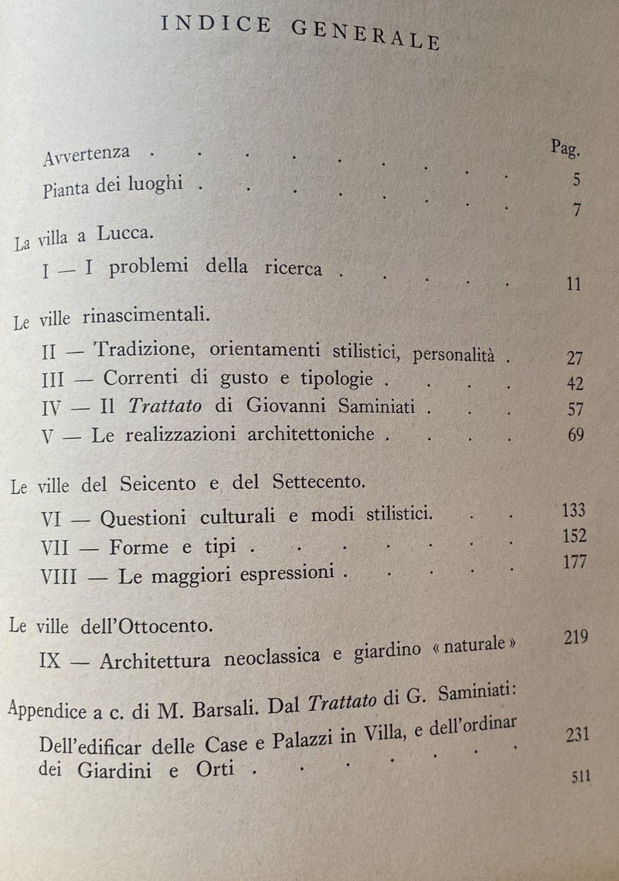 Soggetti: Lucca, Grandi ville italiane, Architettura, Storia, Guide, Città, Giardini storici, Viaggio, Rinascimento, Settecento, Ottocento, Manifattura lucchese, Decorazioni, Urbanistica, Edilizia, Toscana, Affreschi, Mappe, Geminiano, d'Este, Estensi, Nobiltà, Abitazioni, Case nobiliari, Jacopo della Quercia, Pompeo Batoni, Pietro Paolini, Matteo Civitali, Paolo Guinigi, Deodato Orlandi, Zacchia il Vecchio, Angelo Puccinelli, Libri illustrati, Fotografie d'epoca, Beni Culturali, Documenti, Iconografia, Studi culturali, Ville lucchesi, Committenze, Architetti, Opere architettoniche, Planimetrie, Villa Maulina, Lucchesia, Romanico, famiglia Mazzarosa, Villa Mansi, Segromigno in Monte, Documentazione fotografica, Piante, Vedute, Campagna, Scultura, Pittura, Arte, Villa Bottini, Bernardino Buonvisi, Belvedere, Italia, Fontane, Ninfeo, Leone Lorenzetti, Trattato d'Agricoltura, Lodovico Mansi, Archivio di Stato, Mario Barsali, Manoscritti, Bibliografia, Consultazione, Riferimento, Collezionismo, Immagini, Topografia, Alto Medioevo, Chiese, Mura, Sviluppo urbanistico, Monasteri, Palazzi, Mercanti, Città-Famiglia de 'Medici, Pompeo Batoni, Elisa Bonaparte, Felice Baciocchi, Palazzo Ducale, Corte, Territorio, Frantoi, Oreficeria, Collezioni private, Nicola Farnesi, Grand Tour, Villa Guinigi, Principato, Ducato, Buonvisi al Giardino, San Pancrazio, Oliva, Grabau, Butori, La Badiola, Capannori, Villa Torrigiani, Villa Reale di Marlia, Bruguier, Iolanda, Orlando, Vescovo, Specola, Osservatorio astronomico, Torrigiani, Balbani dell'Orologio, Mazzarosa, Vicopelago, Bernardini, Monte San Quirico, Paolina, Massa Pisana, Rinaldi Nardi, Locanda l'Elisa, San Martino in Vignale, Maria Teresa, Compignano, Ilaria del Carretto, Gabriele D'Annunzio, Borbone, Giardino Romagnoli, Disegni, Stile neoclassico, Barocco, Manierismo, Gusto, Ricerca storica, Panorami, Critica, Costruzioni, Materiali, Descrizioni, Geografia, Morfologia, Graffiti, Ricostruzioni, Fonti, Croniche, Sercambi, Labirinti, Giochi d'acqua, Patrizi, Giacomo Sardini, Francesco Sbarra, Collodi, Reise nach Italien, Georg Christopher Martini, Antonio Cerati, Francesco Franceschi, Ferrante Sbarra Franciotti, Gioacchino Salvioni, Vincenzo Lunardi, Pizzorne, Proprietà, Araldica, Baccio da Montelupo, Muzio Oddi, Filippo Juvara, Civitali, Francesco Marti, Bastiano Bertolani, Buonamici, Domenico Martinelli, Giovanni Maria Padredio, Lazzarini, Giusti, Lorenzo Nottolini, Guidiccioni, Gherardo Penitesi, Paolo Cenami, Francesco Pini, Ottaviano Diodati, Giacomo Sardini, Silvestro Arnolfini, Repubblica, Palazzo Dipinto, Poggio, Pretorio, Orsetti, Gigli, Arredi, Stanze, Facciata, Colonne, Colonnato, Stile architettonico, Servitù, Villeggiatura, Interni, Volte, Archi, Stucchi, Palazzetti, Seicento, Tradizione, Stemmi, Eugenio Lazzareschi, Decorazioni, Orti, Alberi, Palazzina, Conventi, Minutoli, Piscicelli, Limonaia, Vasche, Portico, Cortile, Terrazze, Pozzi, Monte, Valle, Referenze, Monumenti, Borromei, Case rurali, Borghi, Malpigli, Palazzaccio, Coriolano Orsucci, Orsetti, Pagliai, Parensi, Santini, Sardi, Suore Carmelitane, Salesiane, Bagni, Firenze, Modena, Siena, Saltocchio, Viterbo, Viareggio, Roma, Pistoia, Pescia, San Michele, S. Pancrazio, Vicopelago, Vallebuia, Capannori, Matraia, Farnesina, Aldobrandini, S. Ilario, Bartolomeo Ammannati, Castruccio Castracani Antelminelli, Bernardo Buontalenti, Bartolomeo Beverini, Martino Bernardini, Pontormo, Tiziano Vecellio, Torquato Tasso, Sangallo, Ventura Salimbeni, Enrico Ridolfi, Raffaello Sanzio, Émilien de Nieuwerkerke, Niccolò Paganini, Andrea Palladio, Paolo da Cremona, Anna Laetizia Pecci-Blunt, March Evelin Philipps, Tommaso Trenta, Ugo di Tuscia, Voltaire, Stefano Tofanelli, Libri rari Vintage fuori catalogo, Edizioni pregiate, Proprietari, Prospettiva, Progetti, Lavori, Siepi, Statue, Peschiera, Pietra, Loggia, Tufo, Marmo, Mosaici, Bosco, Great Italian villas, Architecture, History, Guides, Cities, Historic gardens, Travel, Renaissance, 18th 19th century, Lucchese manufacturing, Decorations, Town planning, Construction, Tuscany, Frescoes, Maps, Nobility, Dwellings, Noble houses, Illustrated books, Period photographs, Cultural heritage, Documents, Iconography, Cultural studies, Villas, Clients, Architects, Architectural works, Floor plans, Romanesque, Photographic documentation, Plants, Views, Countryside, Sculpture, Painting, Belvedere, Italy, Fountains, Nymphaeum, Treatise on Agriculture, State Archives, Manuscripts, Bibliography, Consultation, Reference, Collectables, Images, Topography, Early Middle Ages, Churches, Walls, Urban Development, Monasteries, Palaces, Merchants, Cities, Medici Family, Court, Territory, Oil mills, Jewellery, Private collections, Principality, Duchy, Bishop, Astronomical observatory, Drawings, Neoclassical style, Baroque, Mannerism, Taste, Historical research, Panoramas, Criticism, Constructions, Materials, Descriptions, Geography, Morphology, Graffiti, Reconstructions, Sources, Chronic, Labyrinths, Fountains, Patricians, Properties, Heraldry, Painted Palace, Hill, Praetorium, Furnishings, Rooms, Facade, Columns, Colonnade, Architectural style, Easements, Holidays, Interiors, Vaults, Arches, Stuccos, Seventeenth Century, Tradition, Coats of Arms, Decorations, Vegetable Gardens, Trees, Building, Convents, Lemon House, Tubs, Courtyard, Terraces, Wells, References, Monuments, Rural Houses, Villages, Carmelite Sisters, Salesian Sisters, Florence, Rome, Rare Books Out of Print, Valuable Editions, Owners, Perspective, Projects, Works, Hedges, Statues, Stone, Tufa, Marble, Mosaics, Woods