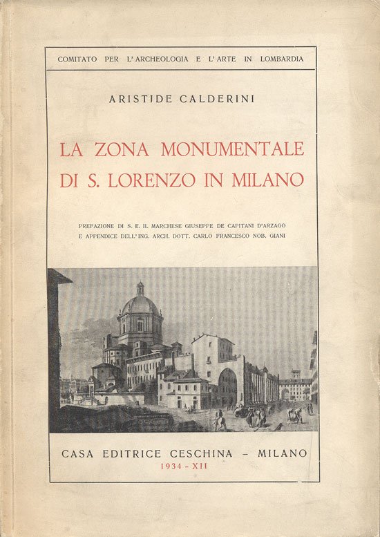LA ZONA MONUMENTALE DI S. LORENZO IN MILANO. - Prefazione di Sua Eccellenza il Marchese Giuseppe De Capitani d'Arzago e appendice dell'Ing. Arch. Dott. Carlo Francesco Nob. Giani.