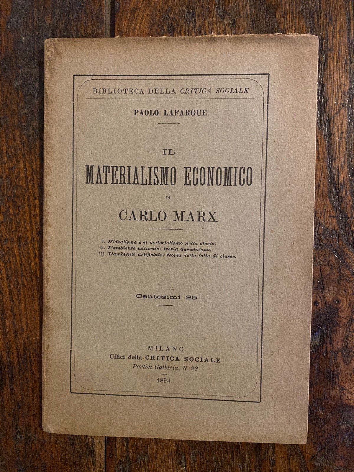 Lafargue Paolo Il materialismo economico di Carlo Marx Critica Sociale 1894