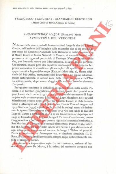 Lagarosiphon major (Ridley) Moss avventizia del Veronese.