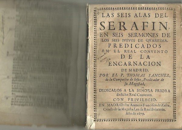 LAS SEIS ALAS DE SERAFIN, EN SEIS SERMONES DE LOS SEIS JUEVES DE QUARESMA. PREDICADOS EN EL REAL CONVENTO DE LA ENCARNACION DE MADRID, POR EL P. THOMAS SANCHEZ, DE LA COMPAÑÍA DE IESUS, PREDICADOR DE SU MAGESTAD. DEDICALOS A LA SEÑORA PRIORA DE…