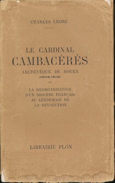 Le Cardinal Cambacérès, Archevèque de Rouen (1802-1818). La réorganisation d'un diocèse français au lendemain de la Révolution