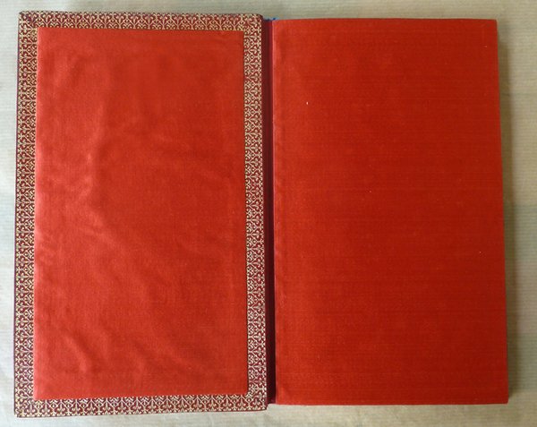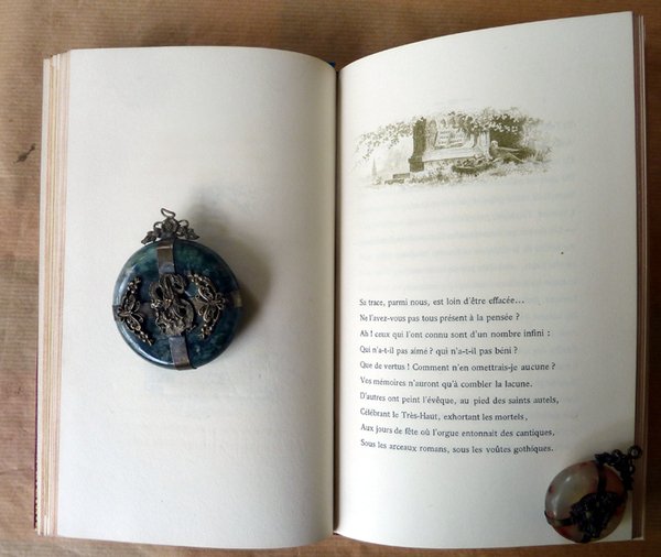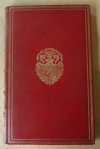 Un volume de format in 8° de 52 pp. dont 3 ff. blancs (Gardes); 1 f. (faux-titre, justification); 2 ff. (frontispice gravé en deux états); titre illustré; 46 pp. de texte illustré de bandeaux et têtes de chapitre; VI pp. de notes en fin. Reliure de l'époque en plein maroquin cerise à logs grains. triple encadrement de filets dorés sur les plats. Dos à 5 nerfs, caissons richements ornés. Tranches dorées. Contreplats gainés de soie rouge "Cardinal"; double gardes papier doré à motif répété. Armes dorés, estampées, du Cardinal Donnet sur le premier plat. Tirage total à 255 exemplaires; celui-ci N°87 un des 25 ex. sur Wathman avec l'eau forte en double épreuve; second papier après 30 japon. Bel exemplaire de cet ouvrage peu commun. Voir photos.