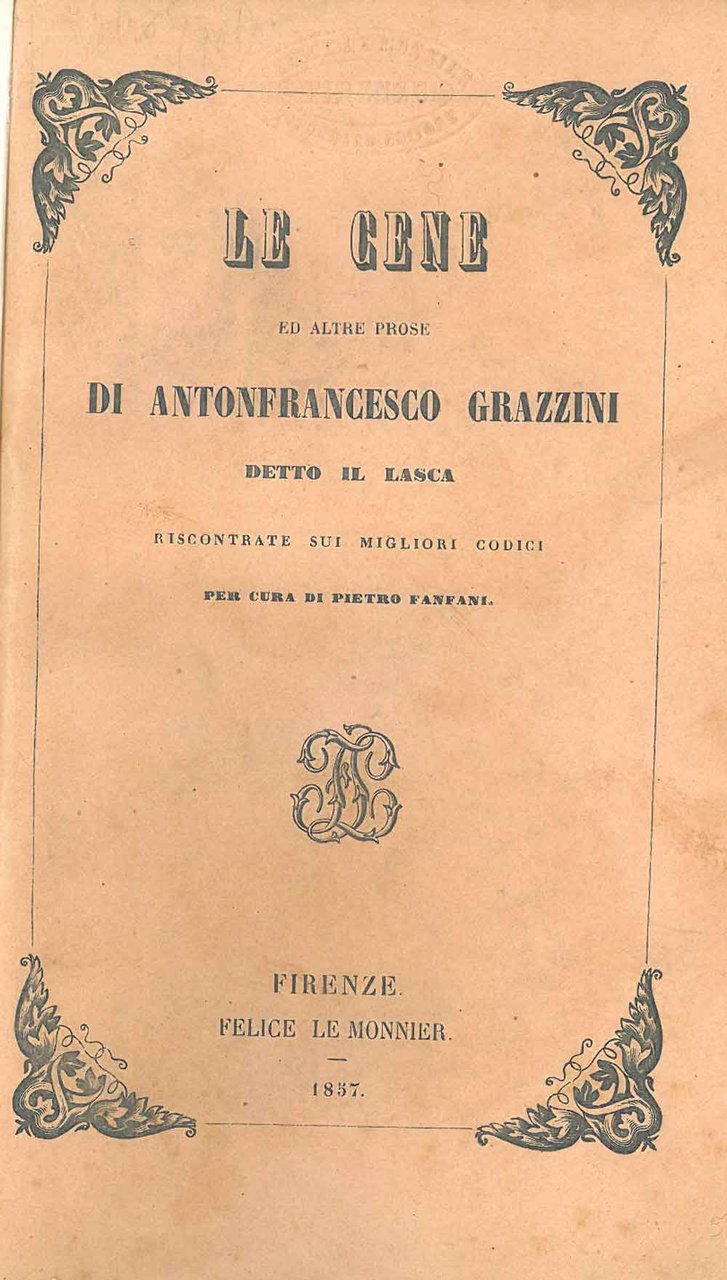 Le cene ed altre prose . detto il Lasca riscontrate sui migliori codici. Commedie. riscontrate sui migliori codici A cura di P. Fanfani