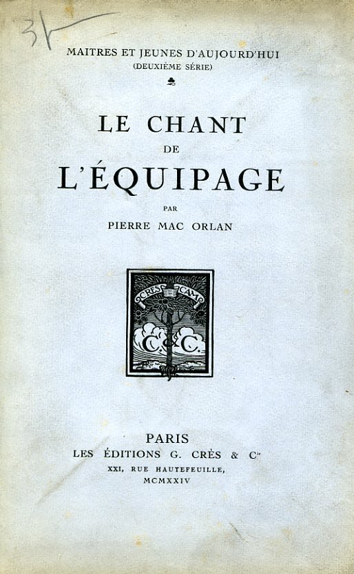Le Chant de l'Équipage. Portrait de l'Auteur par Maurice Asselin | Libros antiguos y modernos | Mac Orlan Pierre (Pierre Dumarchais)