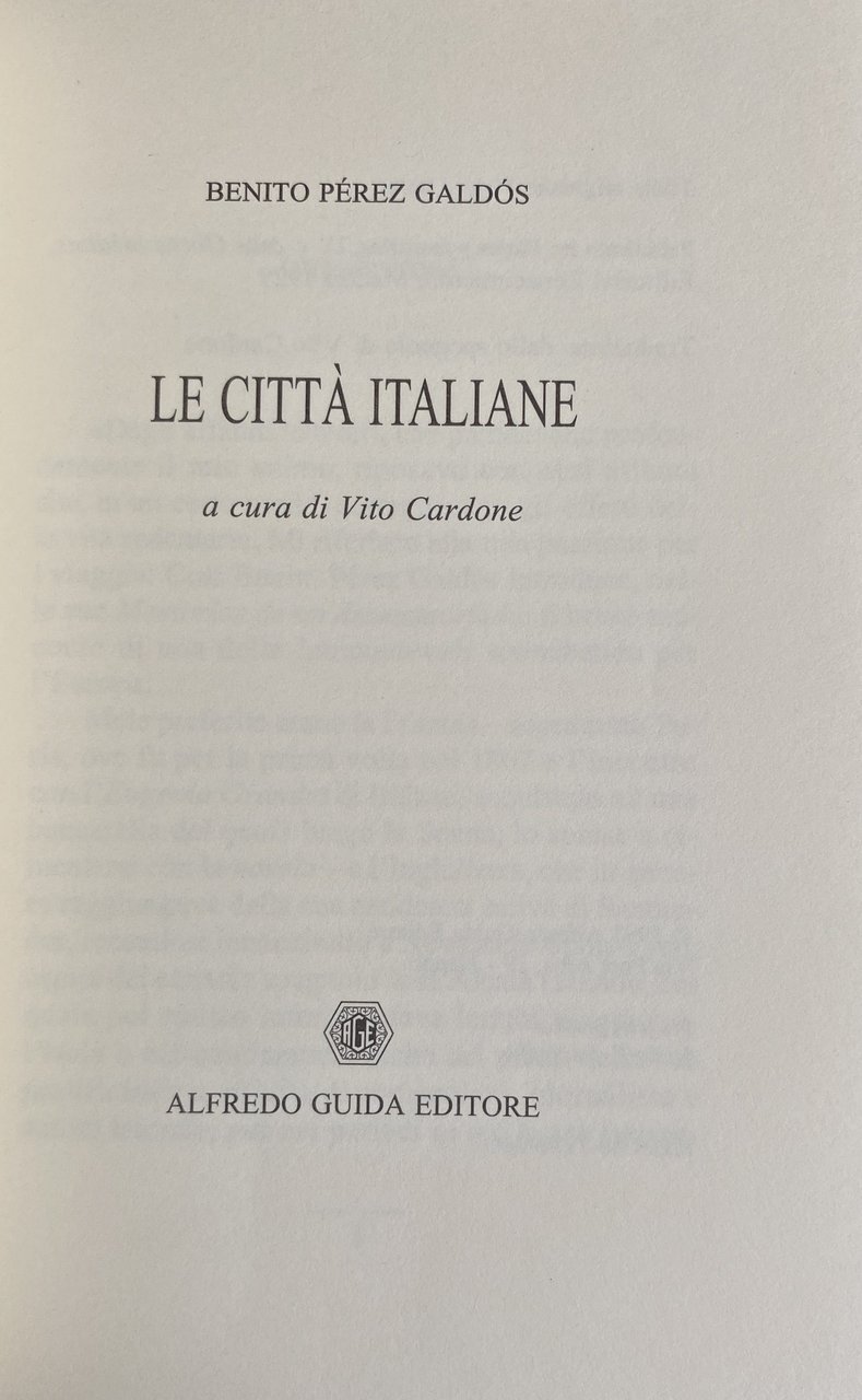 LE CITTÀ ITALIANE. | Libros antiguos y modernos | Benito Pérez Galdós, Vito Cardone, Vito Cardone