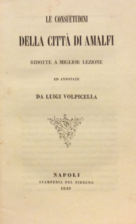 LE CONSUETUDINI DELLA CITTA' DI AMALFI. - Ridotte a miglior lezione.