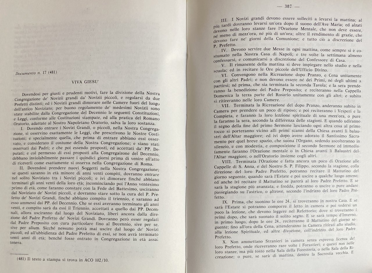 - Testimonianze, Oratorio napoletano, Costituzioni, Regole, Monasteri, Chiesa, Papato, Papi, Bolle papali, Istituzioni cattoliche, Catechismo, Cattolicesimo, Cristianesimo, Cristianità, Evangelizzazione, Regolamenti, Noviziato, Preposito, Clero, Ordini monastici, Monaci, Preti, Conservatorio, Poveri, Documenti, Collegio, Napoli, Archivio, Archivi Ecclesiastici, Storia locale, Amministrazione, Ragazzi di strada, Missione, Gregorio XIII, Cinquecento, Seicento, Sacerdoti, Insegnamento, Preghiera, Educazione, Pedagogia, Biografie, Memorie, Chiese, Vita apostolica, Diritto pontificio, Diritto Canonico, Confederazioni, Oratoriani, Devozione, Giurisdizione, Comunità, Spiritualità, Ascetica, Mortificazione, Culto eucaristico, Culto Mariano, Santificazione, Consigli evangelici, Povertà, Obbedienza, Castità, Ministero sacerdotale, Pastorale, Sacramenti, Penitenza, Studenti, Deputazione permanente, Istituti, Perfezione, Opera religiosa, Infermi, Controversie religiose, Dottrina, Teologia, Religione, Decreti romani, Latino, Collezionismo, Libri rari, Libri fuori catalogo