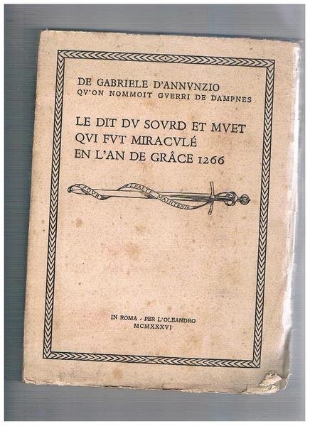 Le dit dv sovrd et mvet qvi fvt miracvle en l'an de grace 1266. | Libros antiguos y modernos | D'Annunzio Gabriele.