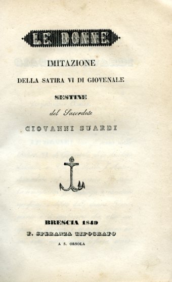 Le Donne. Imitazione della Satira VI di Giovenale. Sestine | Libros antiguos y modernos | Suardi Giovanni