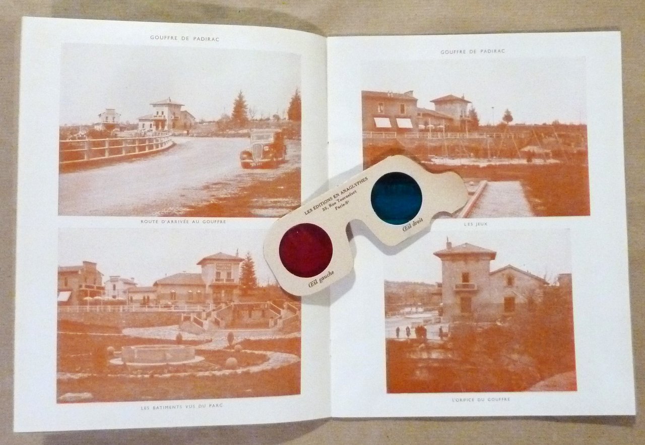 Paris, Les Editions en Anaglyphes, sans date (vers 1930 ?). Un album de format in 8° de 4 pp.; une carte coloriée, 22 vues en relief. Lunettes. Couverture cartonnée souple. Etat de neuf.