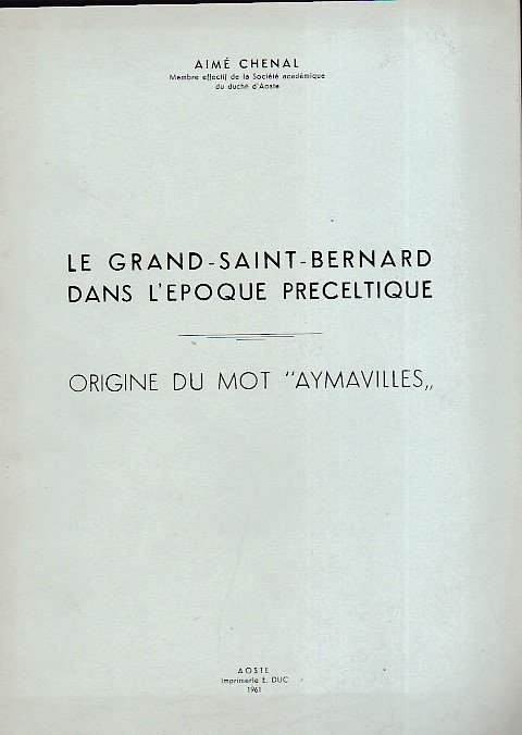 Le Grand Saint - Bernard dans l' epoque preceltique. Origine du mot 'Aymavilles' | Libros antiguos y modernos | Chenal Aimé
