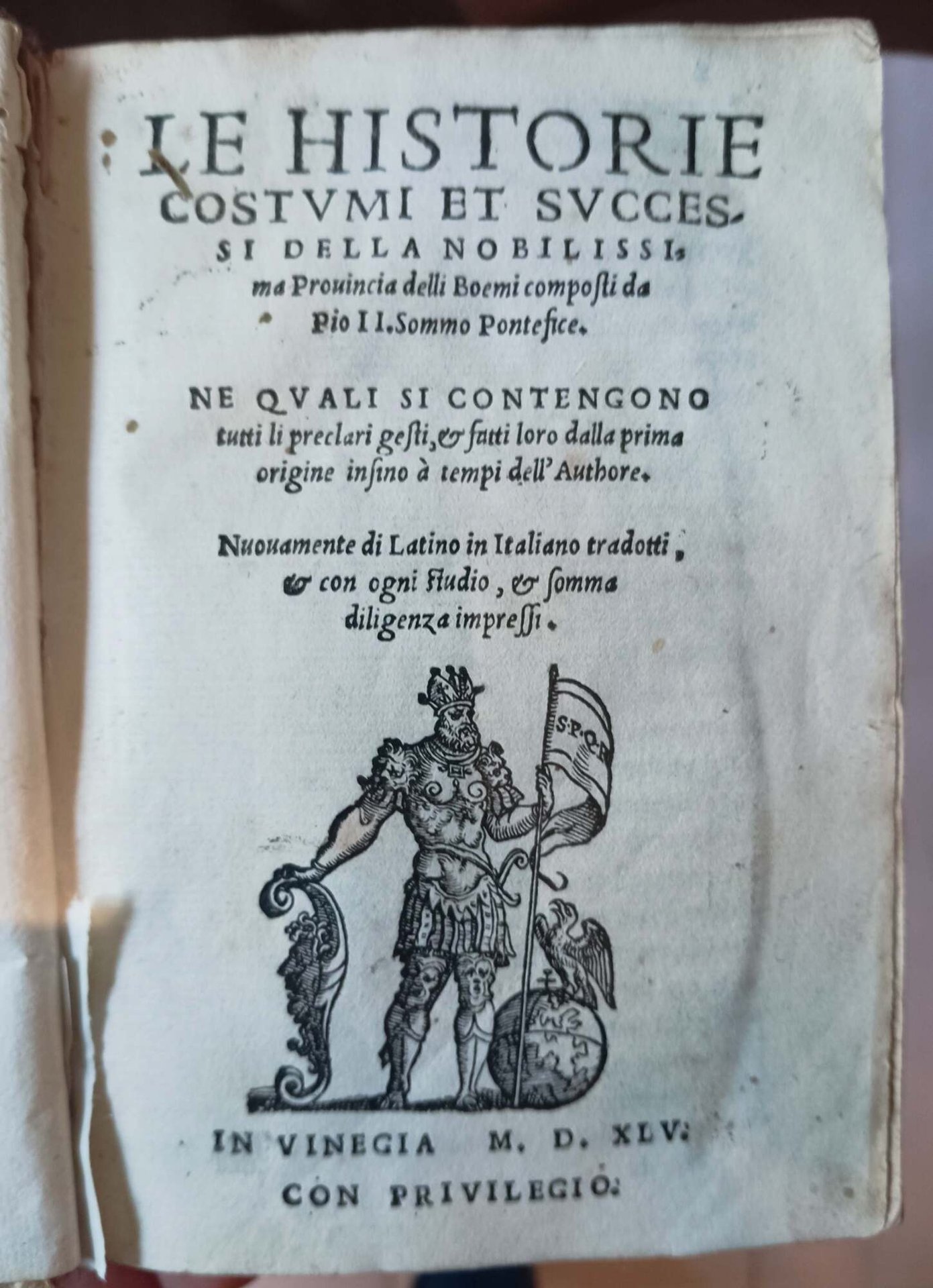 Le Historie, Costumi et Successi della nobilissima Prouincia delli Boemi, composti da Pio II Sommo Pontefice. Ne quali si contengono tutti li preclari gesti, et fatti loro dalla prima origine insino a tempi dell'authore. Nuouamente di latino in italiano tradotti, et con ogni studio, et somma diligenza impressi.