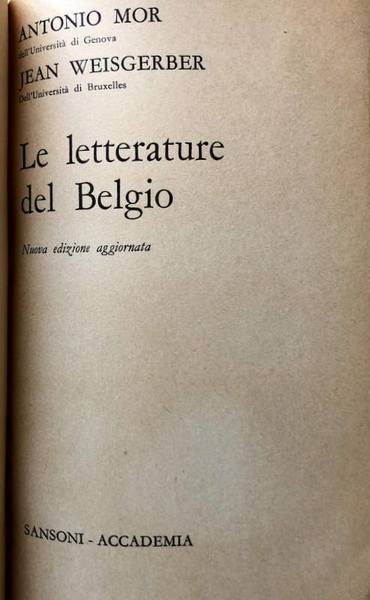 LE LETTERATURE DEL BELGIO | Libros antiguos y modernos | Antonio Mor, Jean Weisgerber