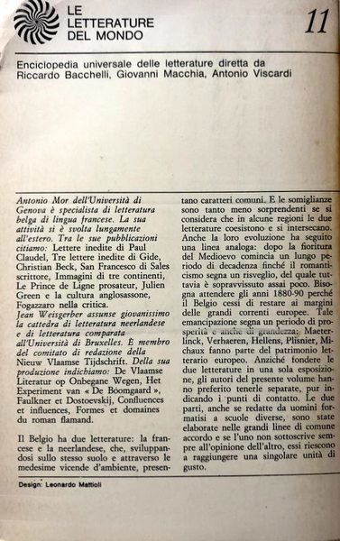 Soggetti: Letteratura belgica, Critica letteraria, Storia, Manuali, Studi culturali, Belgio, Paesi Bassi, Olanda, Rinascimento, Riforma, Lingua Francese, Neerlandese, Bruxelles, Gand, Fiammingo, Prosa, Poesia, Lirica, Narrativa, Teatro, Drammaturgia, Romanzi, Tradizioni culturali, Europa centrale, Riforma, Lutero, Calvino, Protestantesimo, Etica, Linguistica, Medioevo, Erasmo, Controriforma, Illuminismo, Autori, Bibliografia, Libri Vintage, Fuori catalogo, Ulenspiegel, Patriottismo, Cattolicesimo, Filosofia, Decadentismo, Fiandre, Avanguardia, Provincialismo, Cosmopolitismo, Belgian literature, Literary criticism, History, Manuals, Cultural studies, Belgium, Netherlands, Holland, Renaissance, Reformation, French, Dutch, Brussels, Ghent, Flemish, Prose, Poetry, Lyric, Fiction, Theater, Dramaturgy, Novels, Traditions cultural, Central Europe, Reformation, Luther, Calvin, Protestantism, Ethics, Linguistics, Middle Ages, Erasmus, Counter-Reformation, Enlightenment, Authors, Bibliography, Out of Print Books, Ulenspiegel, Patriotism, Catholicism, Philosophy, Decadentism, Flanders, Vanguard, Provincialism, Cosmopolitanism