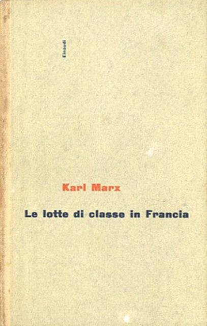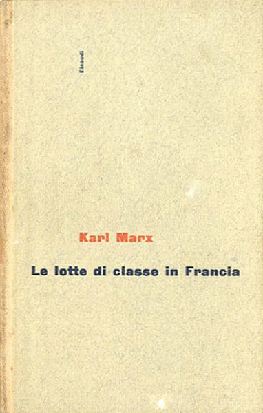 XXI, 187 p. ; 18 x 12 cm. Universale Einaudi ; 3. L'opera di Marx «Le lotte di classe in Francia dal 1848 al 1850» venne pubblicata sulla «Neue Rheinische Zeitung Politisch-ökonomische Revue» come serie di articoli aventi per titolo «Dal 1848 al 1849», «Il 13 giugno 1849», «Ripercussioni del 13 giugno sul continente» e «La situazione attuale: l'Inghilterra». Solo i primi tre vennero pubblicati nei fascicoli I-III. Nel 1895 Engels pubblicò una nuova edizione dell'opera di Marx intitolandola «Le lotte di classe in Francia dal 1848 al 1850» e dando titoli nuovi ai tre capitoli già apparsi. Come quarto capitolo aggiunse le parti dedicate alla Francia della Rassegna maggio-ottobre 1850 con il titolo «La soppressione del suffragio universale nel 1850». Scrivendo il 13 febbraio 1895 a Richard Fischer, Engels affermò che il quarto capitolo forniva "una reale conclusione al tutto senza la quale esso [l'opuscolo] rimarrebbe un frammento". L'Introduzione per l'edizione in opuscolo delle «Lotte di classe in Francia dal 1848 al 1850», che uscì a Berlino nel 1895, fu scritta da Engels pochi mesi prima della sua morte, fra il 14 febbraio e il 6 marzo 1895 e nella presente edizione è riportata alle pagine 3-31. Il 6 marzo 1895, tramite una lettera di Richard Fischer, la direzione del Partito socialdemocratico tedesco, adducendo motivi di opportunità tattica e accennando al pericolo sempre incombente di una legge contro i socialisti, chiese a Engels di attutire il tono, ritenuto troppo rivoluzionario, dell'Introduzione e di accogliere una serie di modifiche che si considerava necessario apportarvi. Engels, pur manifestando riserve e critiche nei confronti dell'atteggiamento irresoluto del partito e delle sue preoccupazioni legalitarie, accolse quasi tutte le richieste di modifica avanzate e consentì che fossero cancellati i passi relativi a una eventuale "lotta armata del proletariato" contro la borghesia. A cura di Mario A. Manacorda. Legatura editoriale, coperta in cartoncino rigido di colore grigio chiaro con titolo impresso al piatto e al dorso. Qualche leggero segno del tempo al dorso (sbiadimento del titolo) e alle pagine interne leggermente ingiallite, per il resto libro in buono stato. Codice libreria 4481.
