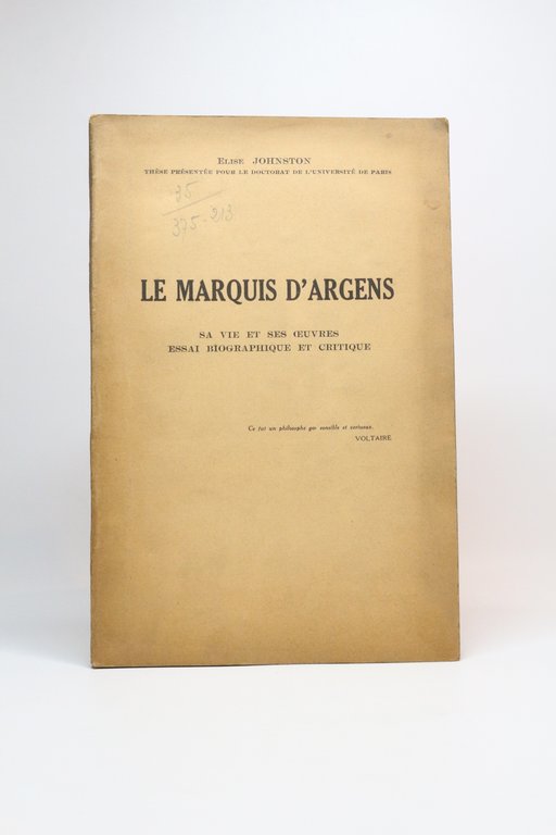 Le marquis d'Argens. Sa vie et ses oeuvres, essai biographique et critique