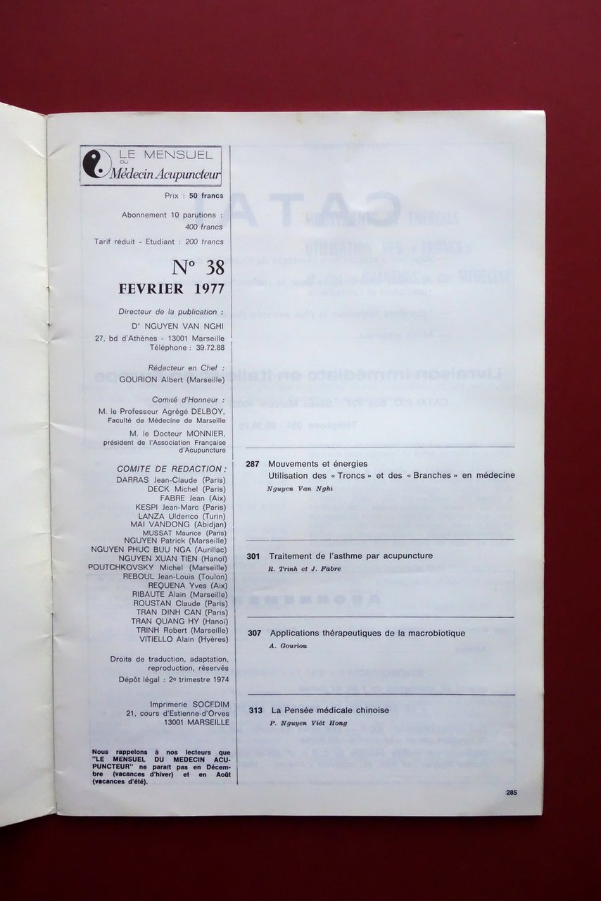 Le Mensuel du Medecin Acupuncteur N. 38 Fevrier 1977 Agopuntura Medicina Cinese